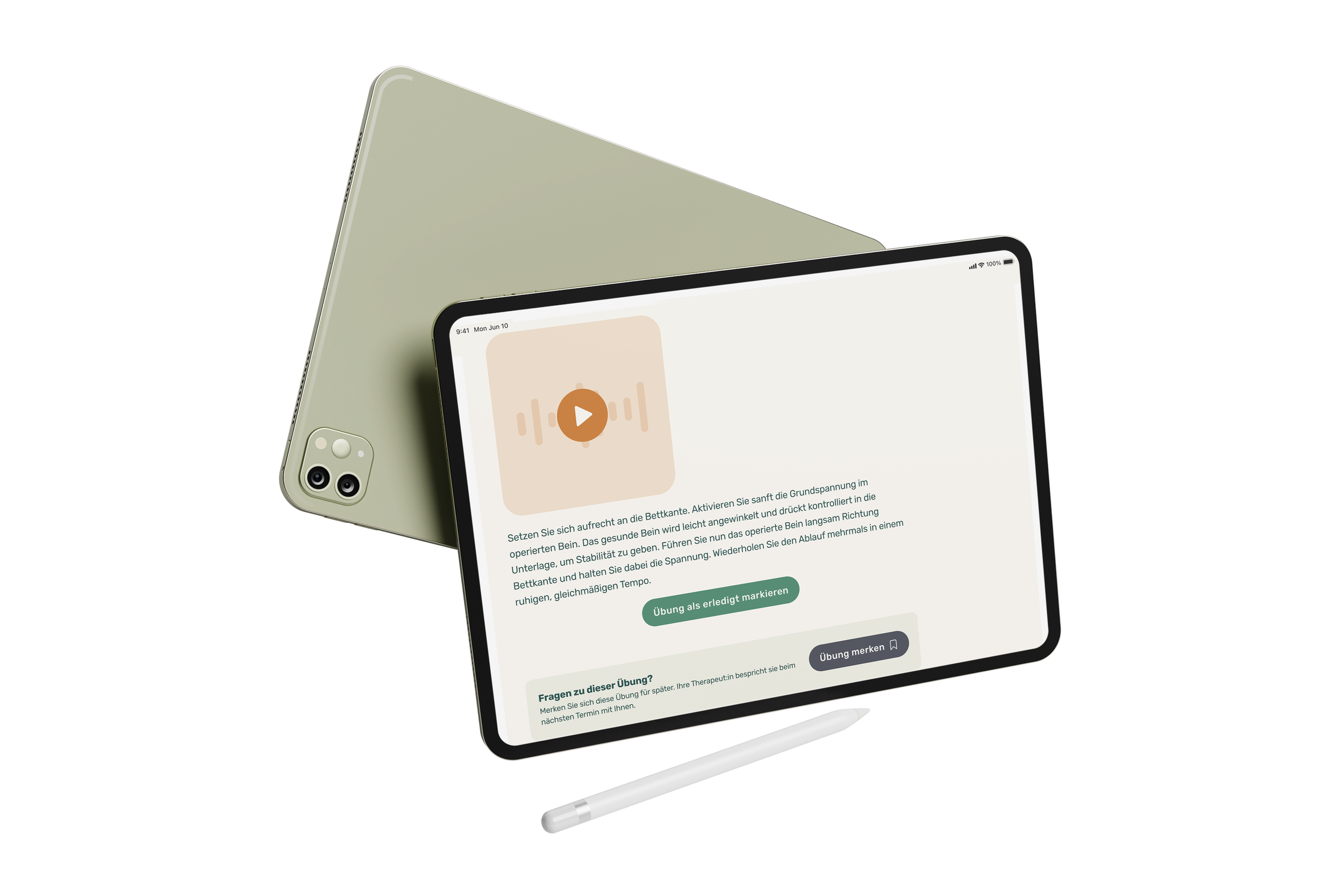 Alle Inhalte sind auf Ihren Behandlungsverlauf abgestimmt und werden Schritt für Schritt freigeschaltet. Sie erhalten Video- und Audioanleitungen, die Ihnen helfen, Bewegungen korrekt auszuführen und Vertrauen in Ihren Körper zurückzugewinnen.