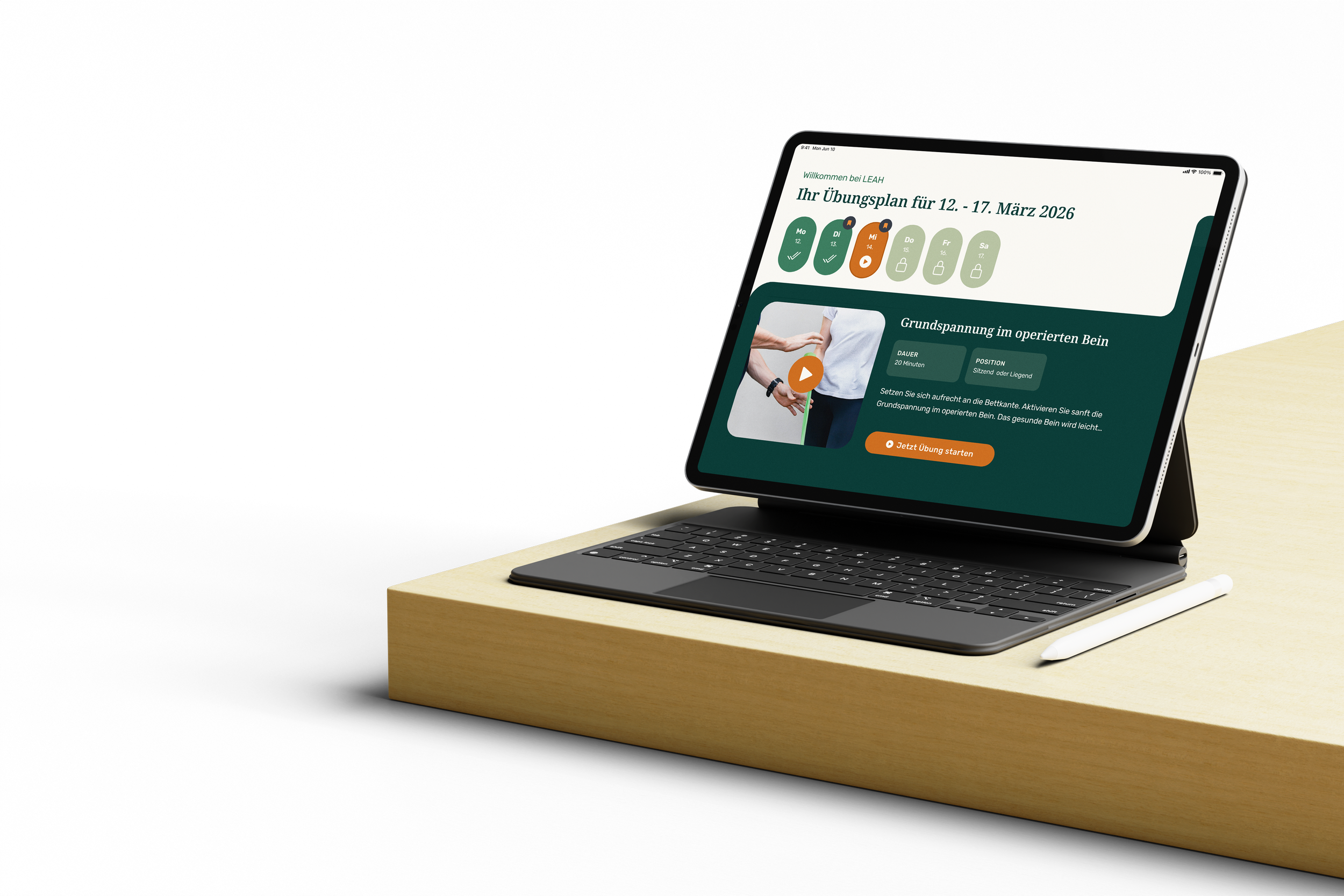 Während andere Lösungen nur Teilbereiche abdecken, begleitet leah Patient:innen durch alle drei Phasen – von der Vorbereitung über den Klinikaufenthalt bis zur vollständigen häuslichen Genesung.